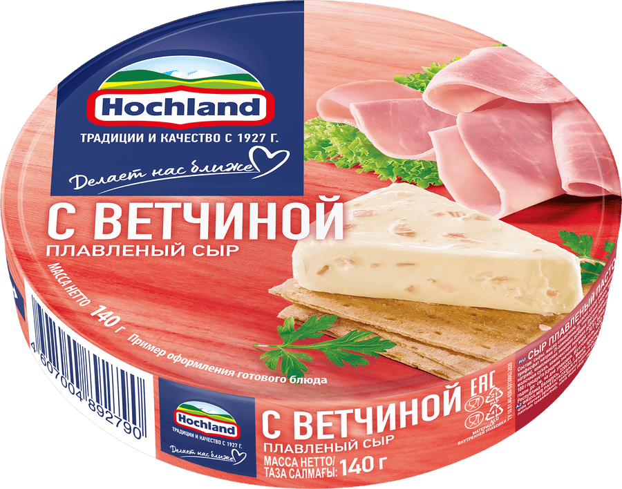 Только в плавленом сыре Hochland с ветчиной так много кусочков настоящей ветчины. Свежая ветчина измельчается на небольшие кусочки прямо перед производством и добавляется в нежный плавленый сыр. А благодаря удобной порционной упаковке любимый вкус плавленого сыра всегда можно взять с собой.