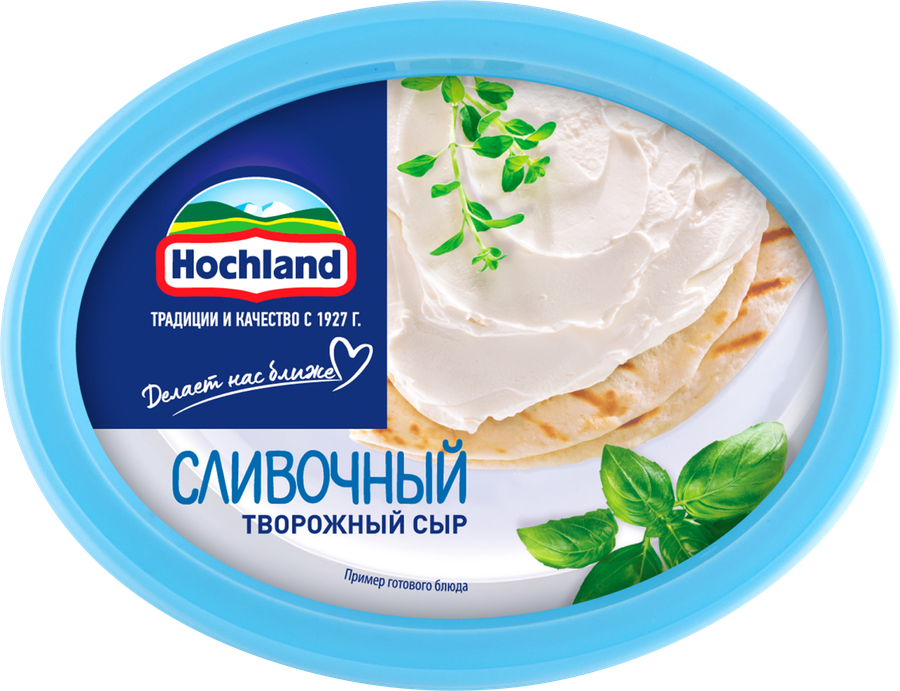 Творожный сыр Hochland сливочный сделан из творога, приготовленного из натуральных сливок и молока. Сыр обладает универсальным нежным сливочным вкусом, который гармонично дополнит бутерброд с любой начинкой. Например, он идеально подходит для бутербродов и сэндвичей на завтрак и отлично сочетается с солоноватой красной рыбой, спелым авокадо и овощами. Благодаря кремовой нежной текстуре сыр легко намазывается на хлеб. Также сыр предназначен для создания сладких ягодных аккомпанементов для блинчиков и оладий.