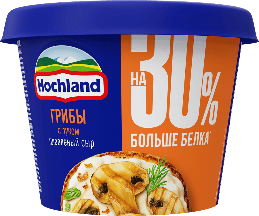 Больше белка, максимум вкуса! Инновация в ассортименте Hochland – плавленый сыр «Грибы с луком» в ванночке 230г.