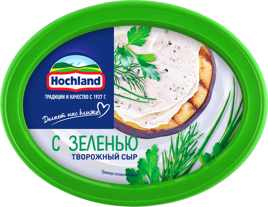 Творожный сыр Hochland с зеленью – идеальное нежное сочетание сливочного вкуса со свежестью душистой зелени. Сделан из творога, приготовленного из натуральных сливок и молока. Сыр обладает приятной консистенцией и легко намазывается на хлеб, горячие тосты и хрустящие крекеры. Он идеален для дополнения как классических бутербродов, так и более интересных блюд - блинчиков, равиоли, творожно-сырной лепешки.